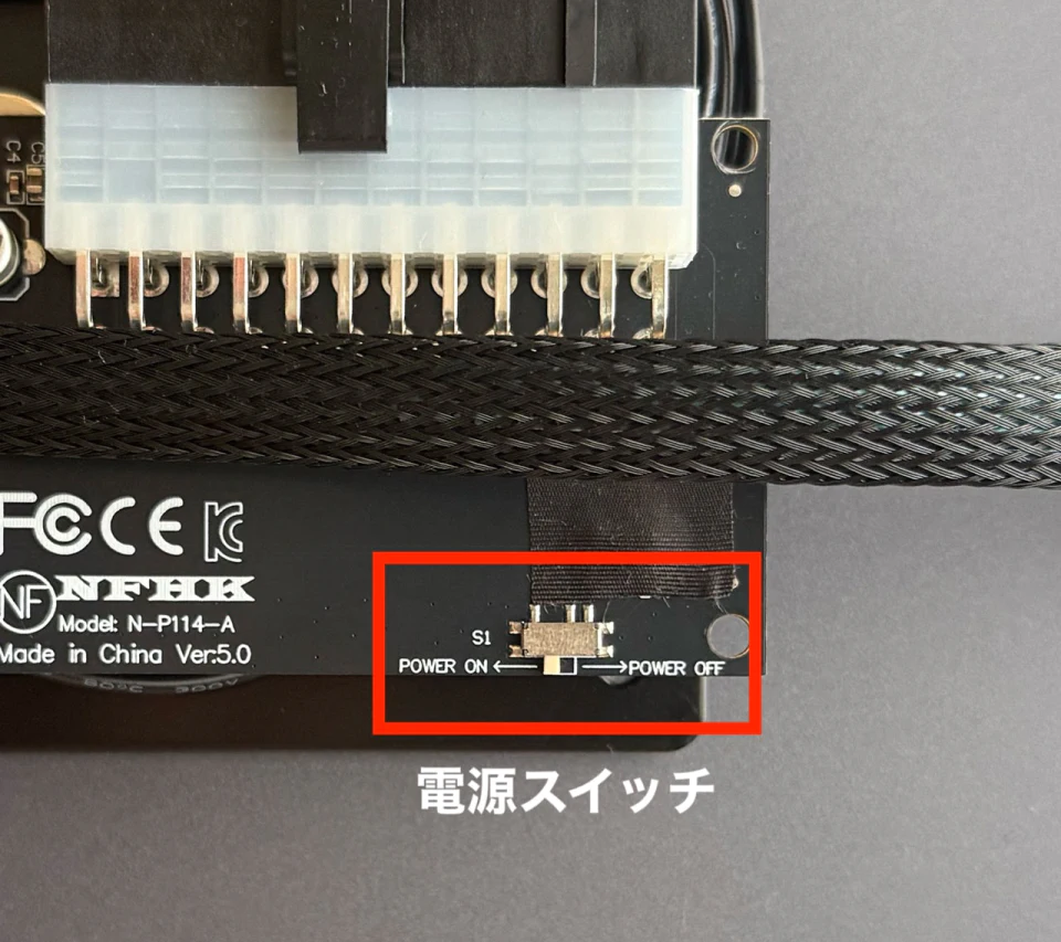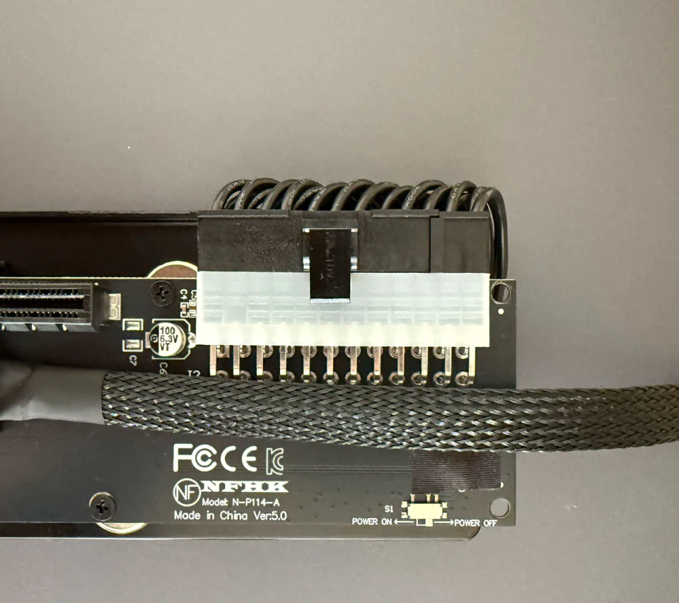 そのため、OCuLink to PCIe ボードに何らかの手段で電力供給が必要です。ケーブルで接続しただけでは PCIe デバイスは動作しません。