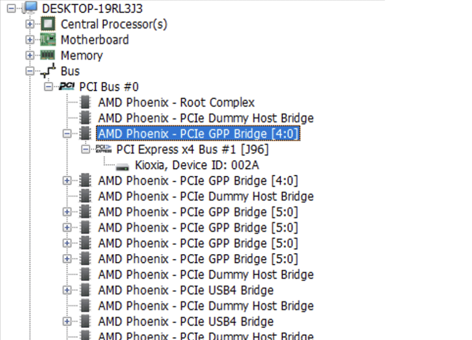 HWiNFO で見ると PCIe x4 Bus で認識されているのがわかる